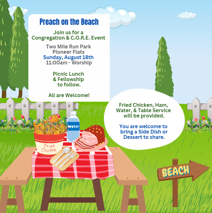 Two Mile Run County Park 471 Beach Rd,, Franklin, United StatesPreach on the Beach. Join us for C.O.R.E Sunday Worship [...]